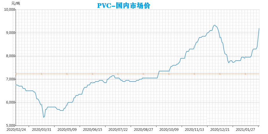 After the Spring Festival in 2021, the market of plastic raw materials was affected by the high operating rate, and rose against the trend in an all-round way. Except for individual high-level fluctuations, the prices of PVC and other raw materials have shown a linear upward trend. It is expected that this market will continue for at least two month.