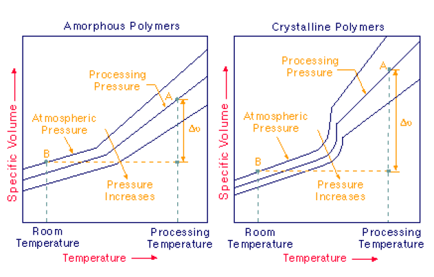 結晶塑料和無定型塑料收縮和翹曲示意圖